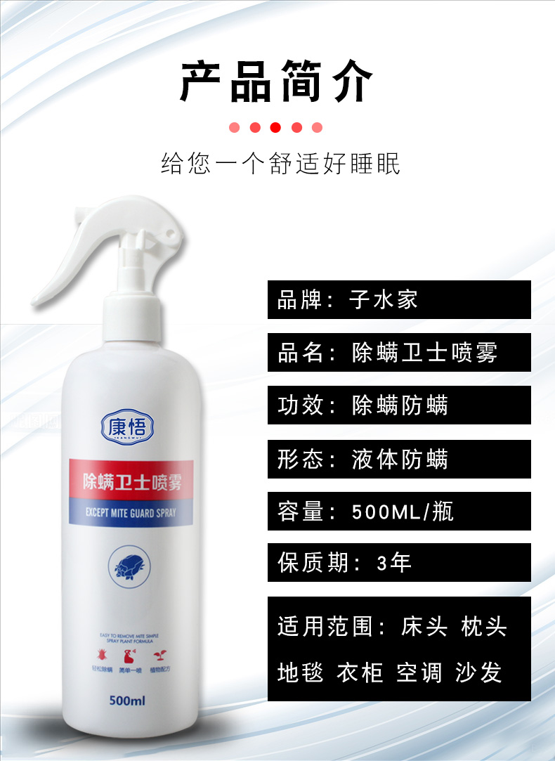 除螨喷雾剂床上沙发家用免洗去螨虫床垫驱螨除蝻祛除螨虫