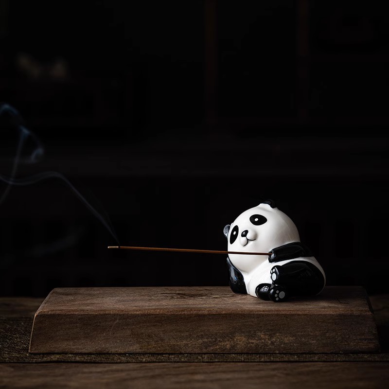 创意陶瓷熊猫墩墩线香插跨境趣味摆件熊猫烧香除臭办公香薰